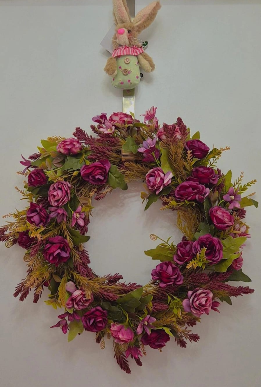 Guirlanda de Páscoa com Flores cor Vinho 40x40cm