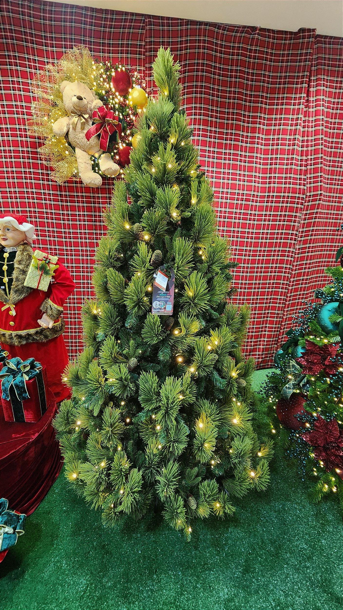 ÁRVORE COLORADO TRAZENDO UM BELO MIX DE GALHOS E ENTRE ESSES GALHOS TEMOS O GALHO PINHEIRO FLOCADO VERDE TRAZENDO UMA TEXTURA DIFERENTE ENTRE OS GALHOS, ESTA ÁRVORE POSSUI GALHOS EMBORRACHADOS E COM PINHA, É UMA ÁRVORE BEM CHEIA