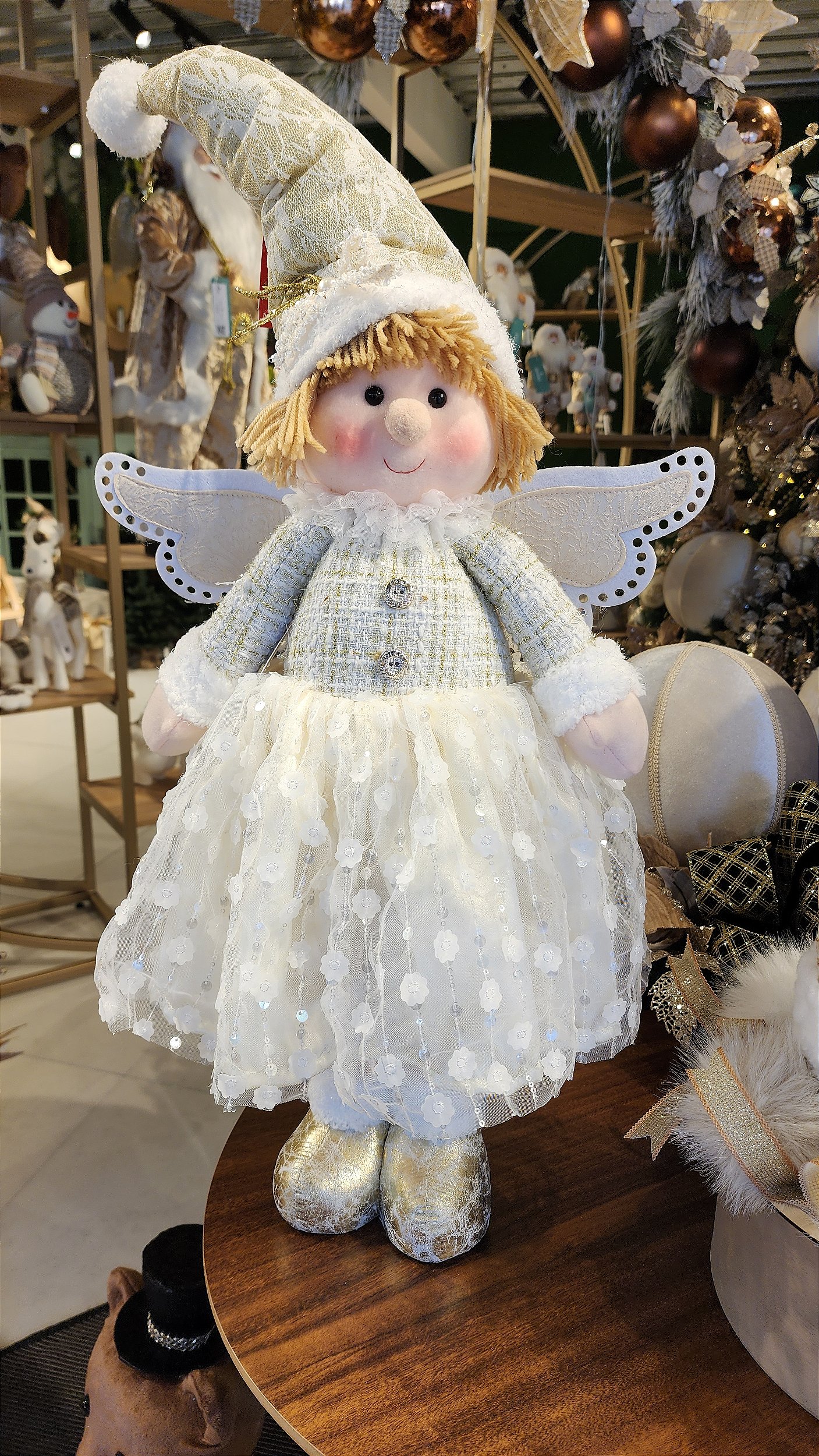 BONECO NATALINO - 085CM - ANJO - BRANCO E DOURADO