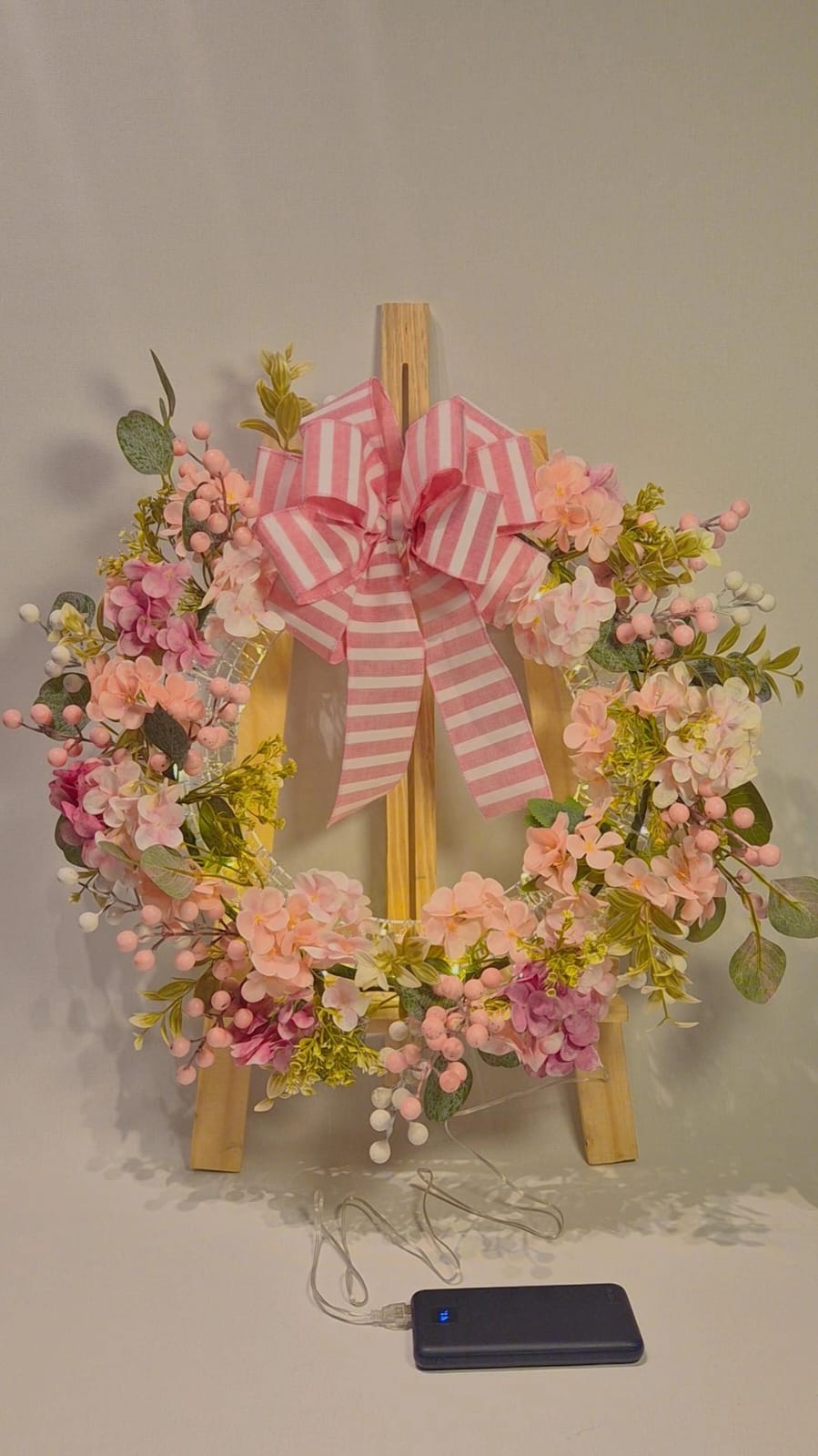 Com flores em tons suaves de rosa, detalhes delicados e um laço listrado encantador 🎀, ela traz a leveza da primavera para sua casa. O toque especial fica por conta da iluminação em LED, que cria um efeito aconchegante e elegante – ideal para destacar sua decoração tanto de dia quanto à noite.