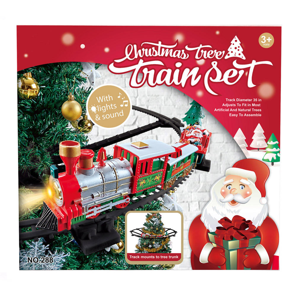 Trem de ferrovia de árvore de natal, brinquedo clássico de brinquedo elétrico, pista, conjuntos de trem de natal, som e luz, brinquedo para crianças.